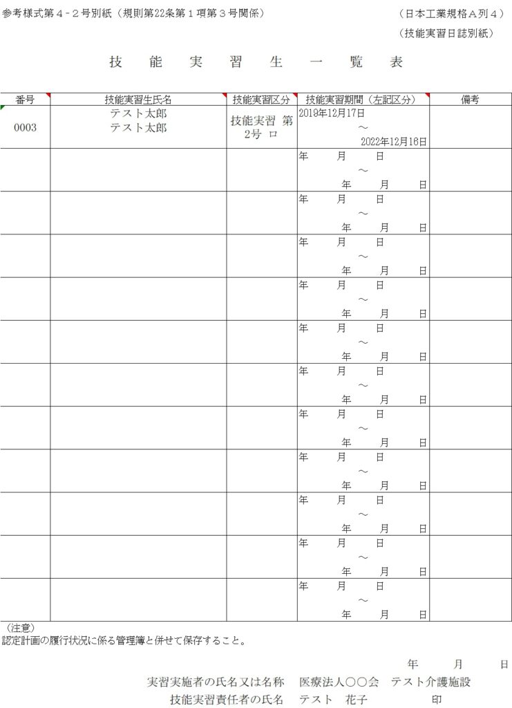 ② 技能実習生一覧表