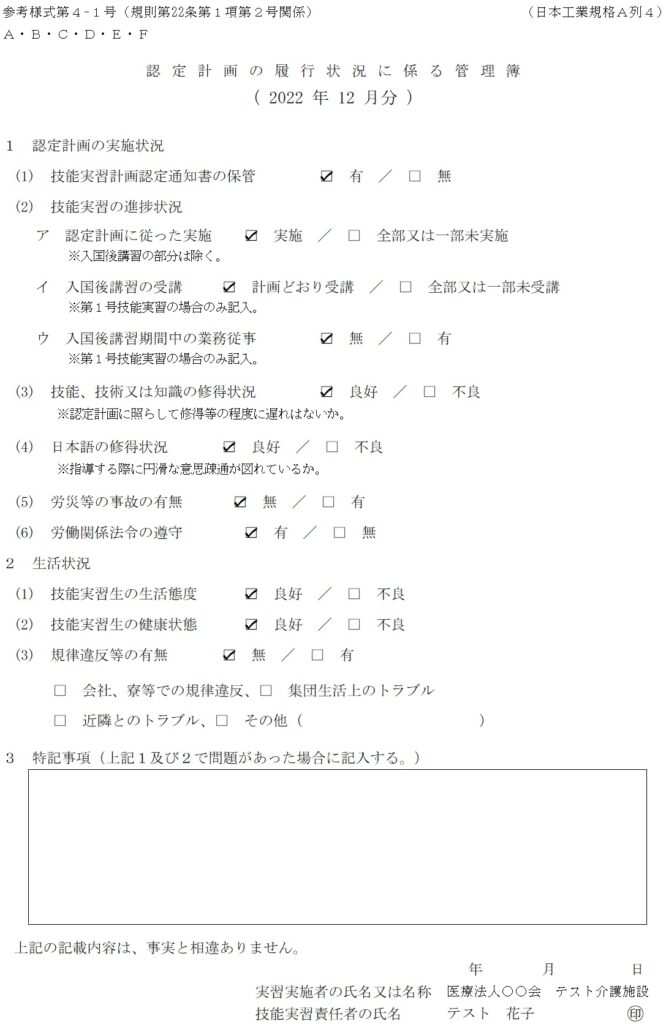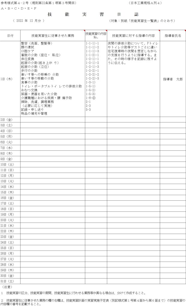 技能実習日誌の作成を